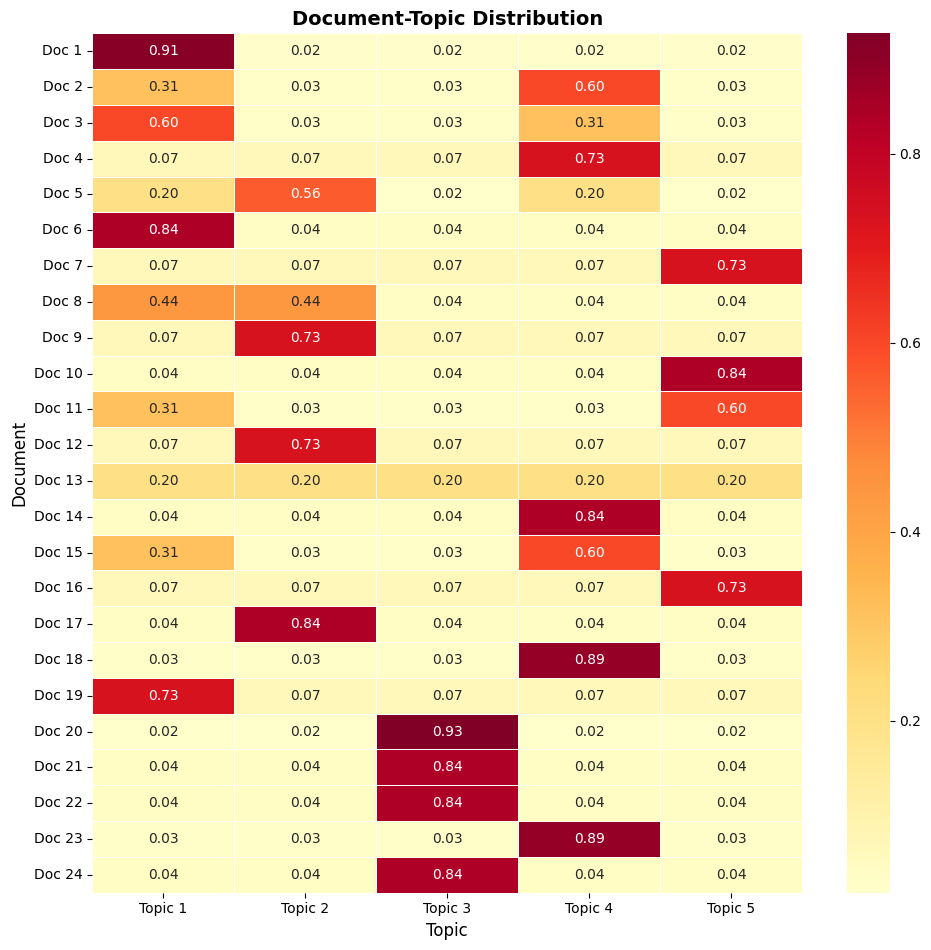Document-Topic Matrix — Topic mixture proportions across the corpus