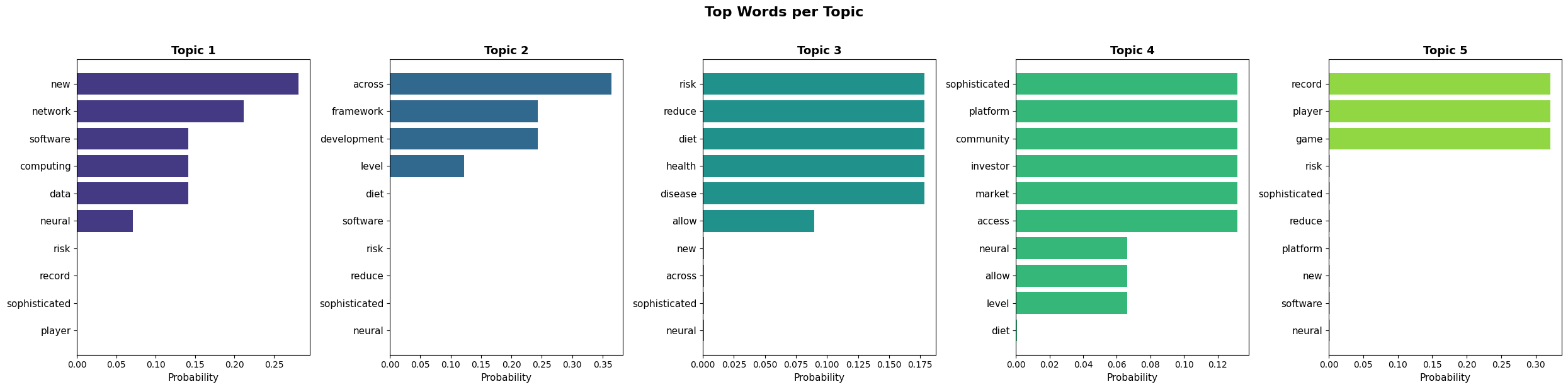 Topic-Word Distributions — Top 10 words per discovered topic
